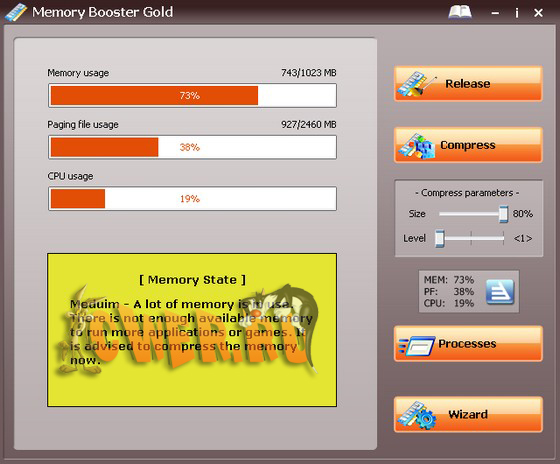 Memory Booster Gold - средство для решения различных проблем, связанных с оперативной памятью компьютера. Это богатая возможностями и легкая в использовании программа. Посредством мониторинга и управлением системной памятью компьютера, позволяет уменьшать время загрузки и повысить производительность вторичных приложений, запускаемых на вашей системе.