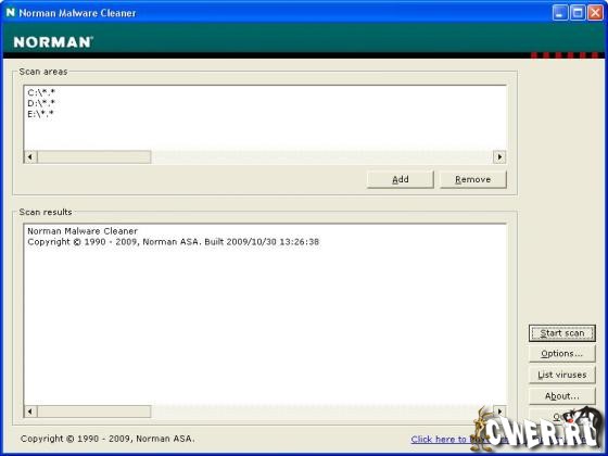 Norman Malware Cleaner - бесплатная утилита, которая после запуска сканирует ПК, обнаруживает и удаляет с компьютера различные виды вредоносного ПО. Программа способна завершать процессы инфицированных приложений, удаляет их из памяти, реестра и с диска, очищает host-файл, удаляет разрешения из брендмауэра Windows. Поддерживается очистка следующих вирусов: Agent, Bagle, Blaster, Dloader, Dumaru, Feebs, JS/Small, Lovgate, Mitglied, Mydoom, Mytob, Navipromo, Netsky, Newdotnet, Renos, Sasser, Sdbot, Sircam, Small.KI, Sober, Sobig, Spyaxe, Spybot, Spywad, Startpage, Swen, Yaha, Zafi, Zlob, Zotob и др.