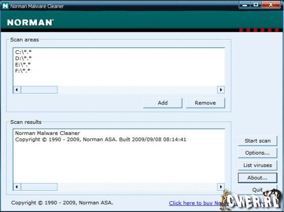 Norman Malware Cleaner - бесплатная программа для сканирования, обнаружения и удаления из системы разнообразного вредоносного ПО. Имеет обширную базу данных вирусных записей, которая включает различные варианты опасных программ семейства Blaster, Mydoom, Mytob, Netsky, Rootkit, Sasser и многих других.