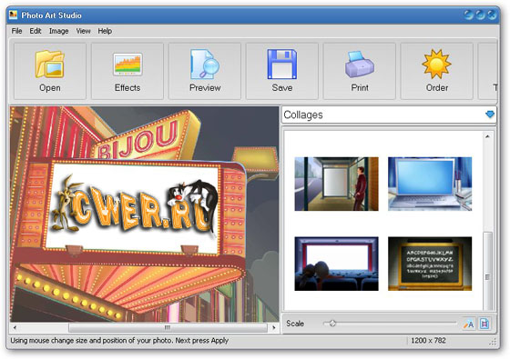 Photo Collage Creator - программа для создания фото коллажей и скрапбуков, которая превращает обычные цифровые фотографии и текст в собственное произведение искусства. Программа сочетает в себе десятки заранее приготовленных шаблонов коллажей, более 50 фото рамок, несколько специальных эффектов и гибкие издательские форматы.