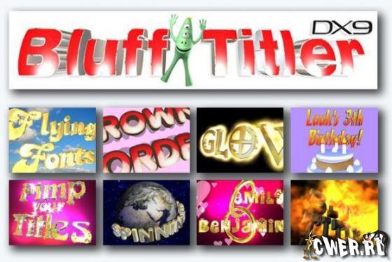 Программа для создания красивых текстовых эффектов и титров, применяемых при DVD-авторинге, а также трехмерной мультипликации. Результат можно просматривать в реальном времени с экспортом в картинку, видео формат. Мультипликации построены из слоев, которые могут отделяться независимо. BluffTitler поддерживает множество различных типов слоев: камера, свет, текст, картинка, видео, плазма, частица, аудио и т.д. Слои могут быть связаны друг с другом для создания специальных эффектов.