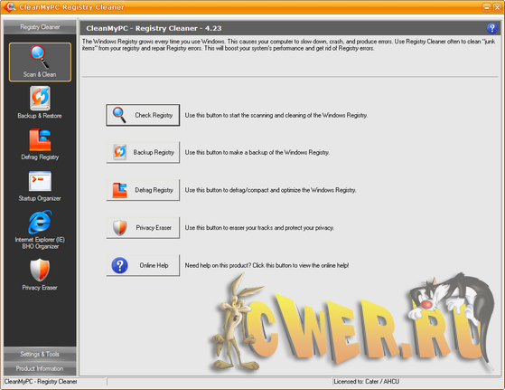 Утилита сканирует реестр Windows, находит неверную или устаревшую информацию в записях реестра и исправляет ее, позволяя системе работать быстрее. CleanMyPC Registry Cleaner имеет функцию создания резервных копий всего реестра, с помощью которой можно восстановить текущее состояние, если вдруг внесенные изменения нарушат работу системы. Кроме этого в утилите имеется менеджер автозапуска и объектов модулей поддержки (BHO) браузера Internet Explorer.