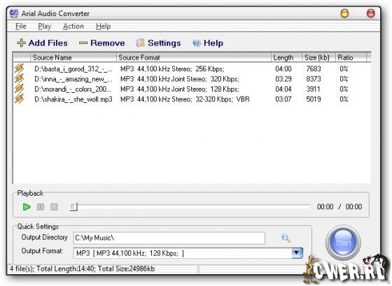 Arial Audio Converter - профессиональная версия аудио-конвертера, способного конвертировать большинство аудиоформатов: MP3, WMA, OGG, MP2, WAV (PCM, DSP, GSM, ADPCM ), G721, G723, G726, VOX, ALAW, ULAW. Конвертация происходит напрямую, без создания промежуточных файлов, что обеспечивает экономию места на диске и высокую скорость работы. Естественно имеется возможность обработки группы файлов.