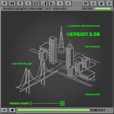Программа предназначена для комфортного просмотра и конвертирования графических файлов популярных форматов в Windows, в том числе и flash роликов с удобной навигацией и перемоткой. Aidsoid Viewer абсолютно автономна и не требует установленного Flash Player или какой-либо библиотеки для воспроизведения flash!