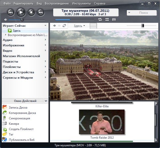 J.River Media Center - мультимедийный центр. Проигрывает большинство популярных аудио и видео форматов, включая MP3, аудио CD и DVD, может преобразовывать CD-аудиотреки в WAV и MP3, переписывать на жесткий диск виниловые диски и кассеты, а также создавать аудио-CD, причем для всех этих функций программа имеет множество настраиваемых параметров. Кроме этого, есть очень хороший и мощный по своим возможностям органайзер мультимедийных файлов, медиаредактор, эквалайзер, встроенный DSP и удобный планировщик заданий для автоматизации процессов проигрывания/записи, а также поддержка пульта ДУ. Из необязательных, но приятных функций - становящаяся уже почти стандартом для "приличных" программ возможность изменения внешнего вида с помощью скинов, мини-режим проигрывателя и "телевизор".