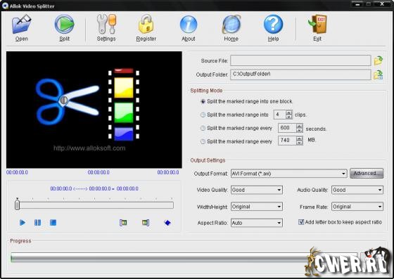 Allok Video Splitter - мощная сервисная программа для разделения, обрезания (подрезки) больших AVI, DivX, Xvid, MPEG, WMV, ASF, RM, MOV, 3GP или MP4 файлов на маленькие клипы в различных форматах. Встроенный видео проигрыватель и различные режимы разделения позволят вам с легкостью разделить или обрезать видео файл на маленькие клипы. Вы можете даже использовать данную программу для конвертирования отдельного файла. К выходным форматам относятся AVI, MPEG I/II, VCD, SVCD, DVD, WMV. Все кодировщики/кодеки уже встроены и любое преобразование может быть сделано после скачивания данной программы. Данная программа не требует каких-либо дополнительных технических навыков и очень проста в использовании.