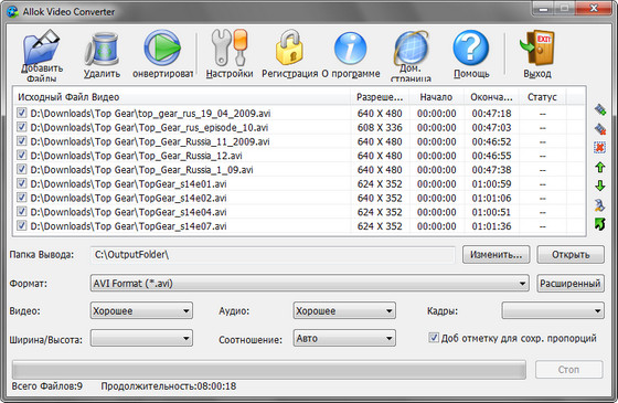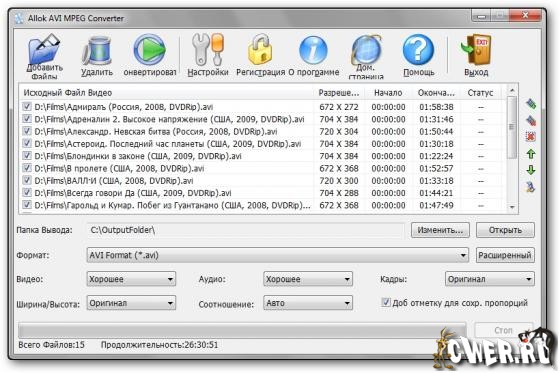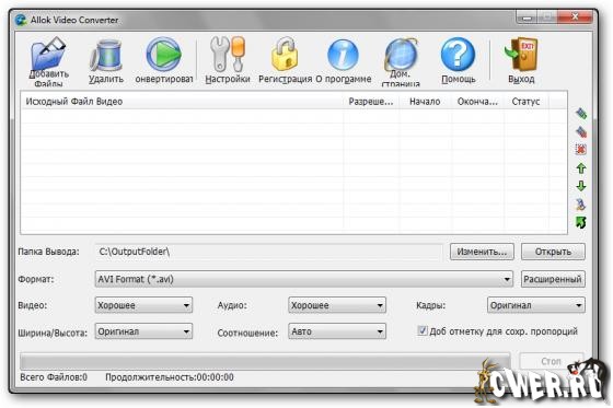 Allok Video Converter является инструментом конвертирования видеофайлов все в одном, который может конвертировать практическм во все известные видеоформаты AVI, DivХ, XviD, MPEG, WMV, ASF, RM, RMVB, MOV, MP4, 3GP, FLV, MKV, MOD и т.д. Программа включает в себя мощный внутренний двигатель преобразования , что позволяет преобразовывать медиа файлы с очень быстрой скоростью и отличным качеством видео. Allok Video Converter может конвертировать видео файлы в форматы которые можно смотреть по телевизору, ставить на сайт, создавать презентации, смотреть на ваших IPod, iPhone, Apple TV, Xbox, Archos и многом другом. Имеет простой графический интерфейс и очень прост в использовании.