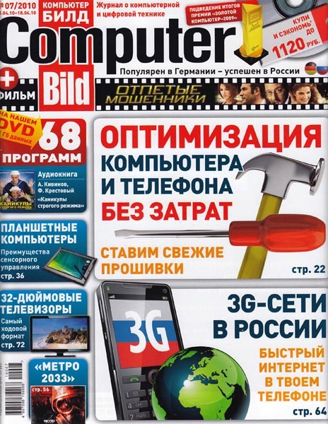 ComputerBild - крупнейшей европейский журнал о компьютерах. Тема номера: как улучшить работу операционной системы, установленной на вашем компьютере (речь пойдет о Windows XP/Vista/7), а также как выжать максимум из офисных приложений Microsoft Office Word, Excel и PowerPoint 2007.