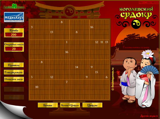 Данный судоку действительно «королевский», так как предлагает три различных варианта: это как классические цифры, так и смешанный вариант «цифры+буквы» и отдельно «буквы». Игра снабжена правилами и имеет гибкие настройки, благодаря чему вы всегда можете настроить желаемое количество открытых символов на доске, а следовательно, и сложность. Красочная графика и «восточное» музыкальное оформление создадут необходимую игровую атмосферу.