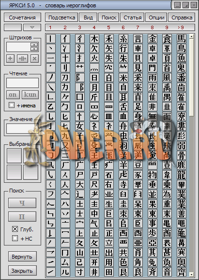 Главным отличием ЯРКСИ от других электронных словарей иероглифов является оригинальная система поиска по радикалам, максимально использующая возможности, которые дает компьютер с реляционной базой данных. В этой системе нет понятия "ключа", традиционного для бумажных словарей. Все радикалы (631 против привычных 214) трактуются как равноправные - а вместо подсчета штрихов, неизбежного в бумажных словарях, пользователю предлагается выбрать несколько радикалов. Быстрому нахождению радикала в таблице служат опции подсветки и сжатия.