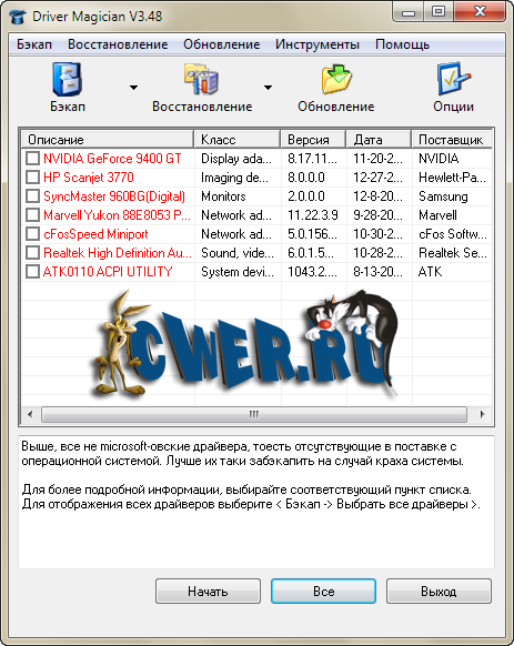 Driver Checker - новый менеджер драйверов который не только обнаружит и "вытащит" драйвера из системы для их возвращения на место после переустановки системы, но и обновит их на более свежие, из большой базы данных оригинальных драйверов от производителей. Поддерживает и автоматически обновляет драйвера: принтеров и сканеров, USB, звука, Vista, Bluetooth, мыши и клавиатуры, Видео, RAID, модемов и сетевых карт, веб-камер, графических карт, VGA и других Windows-драйверов.