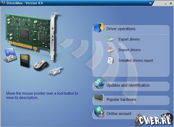 DriverMax поможет легко и быстро переустановить все драйверы Windows. DriverMax собирает информацию об установленных в системе драйверах и выводит список устройств, которые их используют. Приводится информация о версии драйвера, дате создания, разработчике, количестве файлов и наличии цифровой подписи. После этого достаточно экспортировать их в отдельную папку или упаковать в ZIP-архив, и после переустановки Windows устанавливать все необходимое из одного источника. С помощью мастера импортирования можно установить все сохраненные драйвера за 5 минут. Таким образом, Вам больше не придется иметь под рукой множество дисков к разным устройствам.DriverMax поможет легко и быстро переустановить все драйверы Windows. DriverMax собирает информацию об установленных в системе драйверах и выводит список устройств, которые их используют. Приводится информация о версии драйвера, дате создания, разработчике, количестве файлов и наличии цифровой подписи. После этого достаточно экспортировать их в отдельную папку или упаковать в ZIP-архив, и после переустановки Windows устанавливать все необходимое из одного источника. С помощью мастера импортирования можно установить все сохраненные драйвера за 5 минут. Таким образом, Вам больше не придется иметь под рукой множество дисков к разным устройствам.