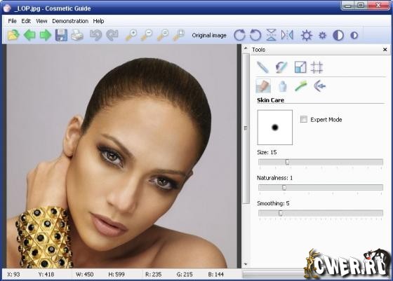 Cosmetic Guide - программа для удаления косметических дефектов непосредственно на фотографиях. Поможет разгладить морщины, отеки или припухлости; удалить родимые пятна и бородавки; избавиться от второго подбородка; отбелить зубы. В программе есть демонстрационные примеры, показывающие работу с инструментами.
