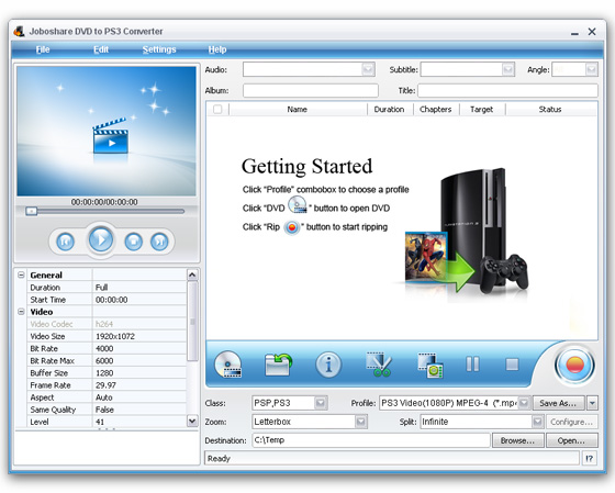 Joboshare DVD to PS3 Converter - является профессиональным и легким в использовании DVD в PS3 конвертором, который может конвертировать DVD для PS3, настоящее кино HD (поддержка 1080p, 720p и 480p высокой четкости) на PS3 с легкостью.