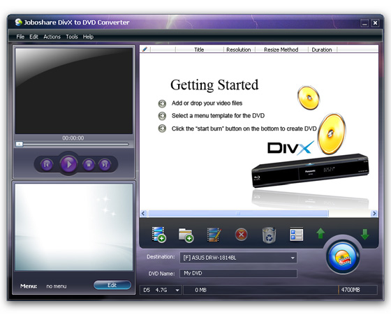 Joboshare DivX to DVD Converter - является профессиональным DivX в DVD и XviD в DVD конвертором, который может легко преобразовать DivX в DVD и XviD в DVD, записать DivX на DVD и XviD на DVD диск для резервного копирования.