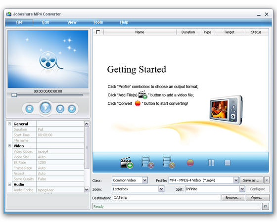 Joboshare MP4 Converter - является профессиональным MP4 конвертером и видео в MP4 конвертером, который может конвертировать видео в MP4 (MPEG4) видео. Лучший MP4 конвертор может конвертировать AVI в MP4, MPEG в MP4, WMV в MP4 и поддерживает практически все популярные видео файлы, включая AVI, MPEG, DivX, MOV, RM, WMV, 3GP, VOB, H.264/MPEG-4 AVC, VCD, DV и так далее. Joboshare MP4 Converter также может конвертировать MP4 в MP3, AAC, M4A музыку с легкостью, супер быстрой скоростью и отличным качеством.