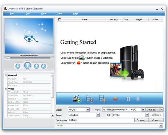 Joboshare PS3 Video Converter - это мощный PS3 конвертор и PlayStation 3 видео конвертер, который может конвертировать видео в высококачественные фильмы воспроизводимые на Sony PS3 (PlayStation 3).