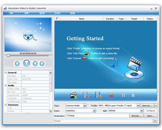 Joboshare Video to Audio Converter - является мощным видео в аудио конвертором и аудио конвертором, который может конвертировать MP4 в MP3, MPEG в MP3, AVI в MP3, WMV в MP3 и так далее.