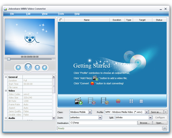 Joboshare WMV Video Converter - является мощным WMV видео кодером, чтобы преобразовывать почти все популярные видео файлы в WMV для воспроизведения на различных плеерах, включая WMV Microsoft Zune, Creative Zen, Pocket PC, Palm и т.д.