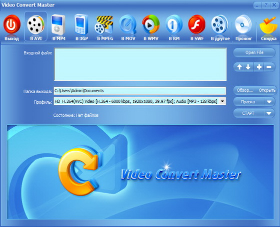 Video Convert Master - универсальный конвертор видеофайлов. Прост в работе - при этом сочетает в себе быстроту и качество обработки. Конвертирует AVI, DVD, VCD, SVCD, MPEG, MPEG 1, MPEG 2, MPEG 4, RM, RMVB, WMV и др. форматы. Записывает видео в DVD/VCD/SVCD. Записывает изображение с DV, WEB Camera, VCR, TV Tuner, и Analog Camera.