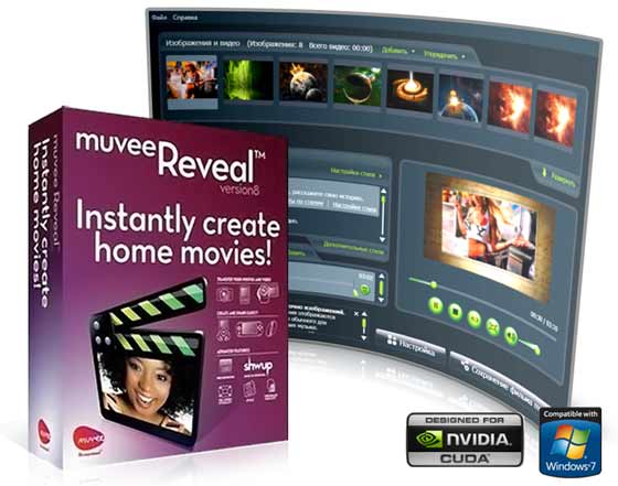 muvee Reveal позволяет быстро и легко создавать фильмы и слайд-шоу из фотографий и видео. Нужен тем, кто не привык заморачиваться тонкостями видео монтажа. Просто добавьте видео, изображения, любимую музыку и выберите предварительно созданный стиль, все остальное программа сделает сама. Программа поддерживает работу с любыми форматами видео, а также с видео высокой четкости разрешения (1280x720, 1920x1080) и в видео форматами PAL и NTSC. Также позволяет добавить в процессе видео монтажа закадровый текст, музыку.
