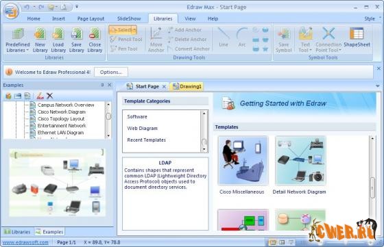 EDraw Max - это программа для построения графиков, которая содержит множество шаблонов и примеров. Вы сможете просто создавать схемы последовательности операций, организационные схемы, бизнес процесс, диаграммы UML, трудовые процессы, структуры программ, сетевые диаграммы, чарты и графики, указательные карты и диаграммы базы данных. С помощью предварительно нарисованных библиотеками и более 2000 векторными символами, составление графиков станет очень простым!
