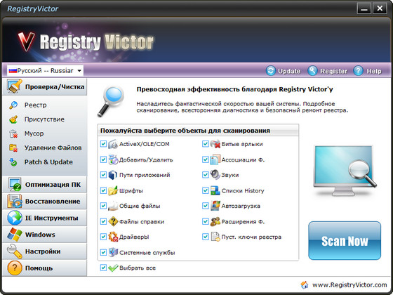 Registry Victor – программа для улучшения работы компьютера, которая находит ошибки, оптимизирует систему и ускоряет ее. Вы можете столкнуться с различными проблемами, которые постепенно появляются с использованием компьютера, например, замедление, зависание, «голубой экран смерти», постоянные сообщения об ошибках и т.д. Registry Victor исправит все, и ваша система будет работать как новенькая.