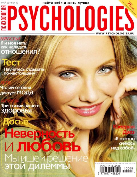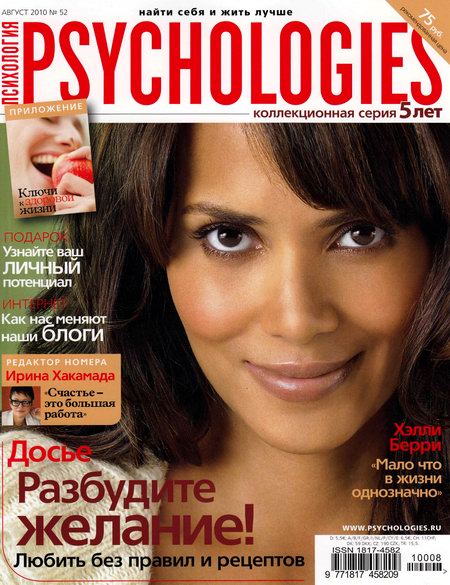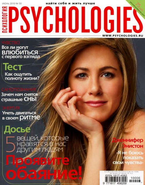Ежемесячный журнал "Psychologies magazine" был создан во Франции и стал самым ярким феноменом европейской прессы последнего десятилетия. Psychologies в переводе означает "психологии" – именно во множественном числе, столь же неожиданном и неправильном для французского, как и для русского и других языков. "Psychologies" – журнал, главной и единственной темой которого является жизнь каждого из его читателей. Все его содержание - это вопросы самопознания, способы раскрыть собственные возможности, чтобы жить, получая удовольствие от жизни и отношений с другими людьми.