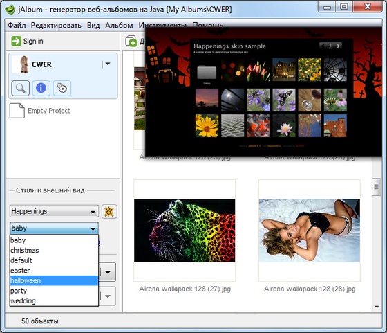 Jalbum - программа для автоматического создания веб-галерей. Для этого достаточно мышкой перетащить в окно программы папку с картинками, и она сгенерирует галерею с уменьшенными копиями изображений (или Slide-Show вариант). Впрочем, возможен и ручной режим работы с полным контролем над создаваемым проектом, в том числе с использованием имеющихся фильтров изображений, настройкой стилей, использованием данных IPTC/EXIF и т.п.