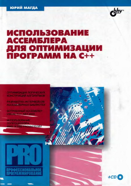 Рассматривается использование языка ассемблера для оптимизации программ, написанных на языке C++. Подробно изложены вопросы применения современных технологий обработки данных ММХ и SSE, а также использования особенностей архитектур современных процессоров для оптимизации программ. Приведены практические рекомендации по оптимизации логических структур высокого уровня, использованию эффективных алгоритмов вычислений, работе со строками и массивами данных.