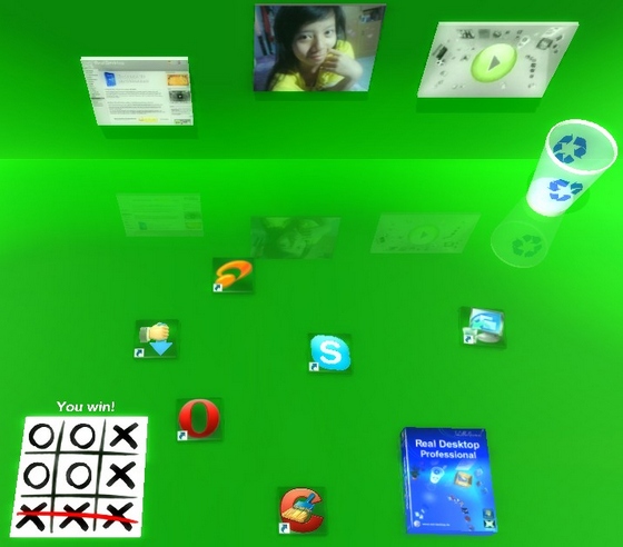 Real Desktop - программа для изменения вида рабочего стола Windows, преобразующая его в 3-х мерную поверхность. Real Desktop вдохнет новую жизнь в ваш Рабочий стол и превратит его в настоящий реальный рабочий стол. Насладитесь естественностью графики и невероятной динамикой и звуковым сопровождением. Программа использует DirectX и имеет физический движок, но на быстродействии компьютера это не сильно сказывается. После установки достаточно нажать на ярлык - и у вас уже 3D Рабочий Стол! Отключается таким же образом.