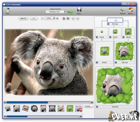Icon Commander конвертирует изображения любого формата в ярлыки для Windows. Вы сможете найти массу различных изображений в Интернете и создать из них ярлыки для рабочего стола, приложений и т.д. В программе Icon Commander есть коллекция разных стилей для ярлыков. С помощью IconCommander вы сможете создать ярлык всего одним кликом мыши. Программа поддерживает ярлыки 256?256 Windows Vista с альфа-каналом.