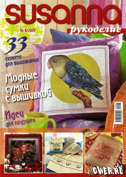 "Susanna. Рукоделие" - журнал по рукоделию, посвященный вышивке. В номере представлены разнообразные сюжеты для вышивки подушек, скатертей, салфеток, занавесок, полотенец, сумок, картин – "Подсолнухи", "Морское дно", "Романтичные малышки", "Попугаи", "4 времени года", "Коктейли из фруктов", вышитые медвежата и др.