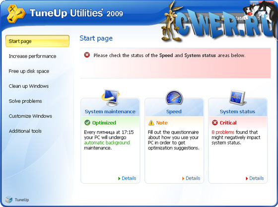 TuneUp Utilities 2009 - компактный пакет системных утилит с мощными возможностями: чистка и исправление ошибок системного реестра, восстановление и безвозвратное удаление данных, оптимизация оперативной памяти, менеджер процессов и автозагрузки, корректное удаление ставшего ненужным ПО, управление сетевыми параметрами, оптимизация интернет-соединения, настройка "скрытых" параметров системы, подробная информация о системе и многое другое.