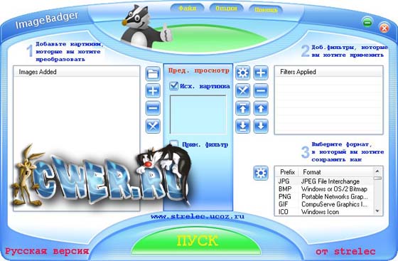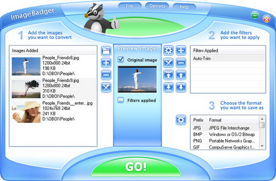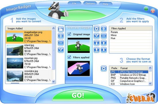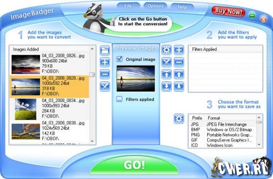 ImageBadger Deluxe - программа для обработки и преобразования изображений,с помощью которой можно конвертировать изображения в заданные форматы, добавляя при этом различные эффекты. Программа имеет большое разнообразие фильтров, которые помогут это осуществить (более 40 фильтров), поддерживает пакетную обработку изображений, более 150 графических форматов.
