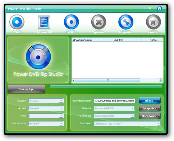 Power DVD Rip Studio – это мощный инструмент конвертирования DVD видеодисков в следующие форматы: AVI, MPEG, WMV, WAV и SVCD… Вы легко можете скопировать DVD в iPod, PSP, iPhone, Zune, и на мобильный телефон.