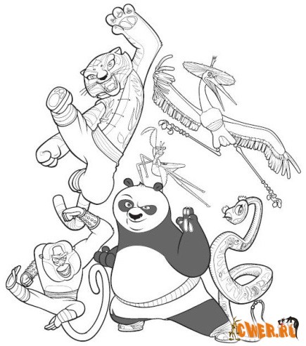 15 раскрасок на популярный мультипликационный фильм "Кунг-фу Панда"