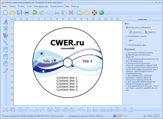 RonyaSoft CD DVD Label Maker - представляет собой программное обеспечение для дизайна этикеток и красивых обложек для вашего видео, mp3 диска, а данных, фото слайд-шоу. Простота в использовании, с помощью мастеров позволяет создавать обложки всего за несколько кликов. Программа содержит шаблоны - этикетки для CD, Slim CD, DVD, DVD Slim.