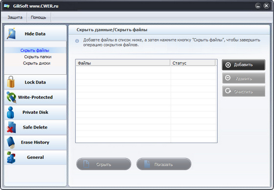 GiliSoft Privacy Protector - мощный и надежный комплект для защиты частной жизни. С помощью данной программы вы сможете скрыть, запретить доступ или защитить от изменения любые файлы, папки или целые диски. А также очистить следы деятельности Windows, приложений и Internet explorer. Программа закрывается паролем, так что не кто не сможет получить доступ к важной для вас информации.