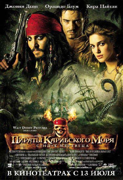 Приключенческий пиратский фильм, действие которого разворачивается на Карибах в первой половине XVIII столетия. Главный герой - Капитан Джек Воробей, очаровательный негодяй, бороздит прозрачные воды Карибского моря, которое служит ему обширной площадкой для игр в приключения и тайны. Вас ждут полчища пиратов-мертвецов, легендарный корабль-призрак "Летучий голландец", мифическое морское чудовище Кракен, много искрометного юмора и поразительные спецэффекты.