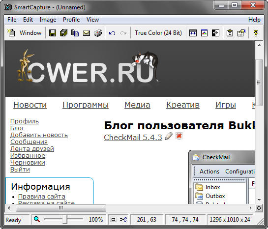 SmartCapture - это профессиональный инструмент для для снятия скриншотов с экрана монитора. Понятный интерфейс и мощные характеристики делают эту программу идеальной для каждого, кто хочет создавать копии любого контента рабочего стола Windows. Она может захватывать прямоугольные области экрана, целые объекты, окна, и она может получать изображения от Twain совместимых источников данных (сканеры, цифровые камеры). Захваченные изображения легко преобразуются, печатаются, сохраняются, копируются в буфер обмена, посылаются по почте, открываются для редактирования в графических редакторах. SmartCapture поддерживает все основные форматы файлов, манипуляции изображениями (изменение размеров, вращение, замена цвета, инвертирование, и др.), несколько мониторов, мастера создания копий, многоуровневая отмена действий.