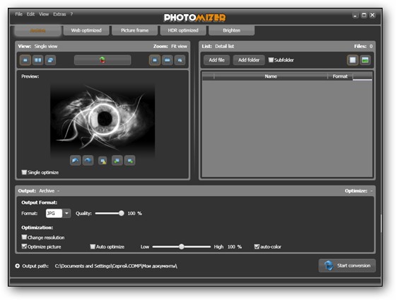 Photomizer – это графический редактор нового поколения. Он обнаруживает все, что должно быть откорректировано и обеспечивает подходящие инструменты для этого. С Photomizer вы можете корректировать тональность, увеличивать контраст, регулировать резкость, матовость изображений. Программа имеет функцию автоматического редактирования фотографий. В результате вы получите фотографии высокого качества. Photomizer превращает низкокачественные изображения, которые иначе были бы безвозвратно потеряны, в естественные и привлекательные фотографии, не создавая впечатление искусственного редактирования.