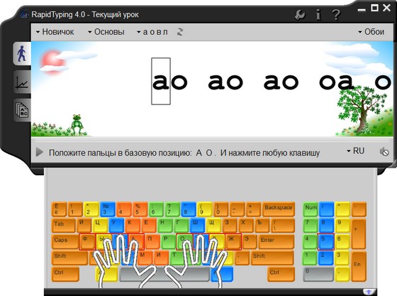 RapidTyping Tutor - бесплатная программа позволяющая улучшить навыки набора текста через серию легких уроков, осваивая слепой десятипальцевый метод печати. Удобный в использовании тренажер успешно обучит вас и ваших детей печатать быстро и без ошибок в легкой игровой форме. С помощью RapidTyping Typing Tutor вы сможете научиться эффективно использовать клавиатуру в любой раскладке – русской или английской, и повысить скорость печати кириллицей и латиницей.