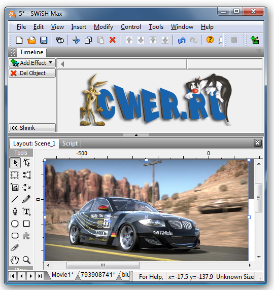 Swishmax - мультимедийное программное обеспечение для создания интерактивной Flash-анимации, с набором из 230 визуальных эффектов, ActionScript языком, поддержкой динамического контента и вводных форм. C помощью данной программы Вы с необычайной лёгкостью сможете создать свой флэш-баннер, меню... да что угодно! Интуитивно-понятный интерфейс, множество эффектов - всё говорит в пользу этой программы!