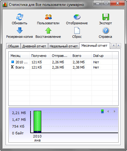 NetWorx - бесплатная утилита для учета интернет-трафика и мониторинга скорости Интернета на вашем компьютере. Программа работает с любым кабельным или беспроводным подключением, а также модемом, предоставляя удобную статистику, отчеты и графики. Вы сможете измерить реальную скорость и загрузку вашего интернет-подключения, просматривать ежедневные, недельные и месячные отчеты и получать уведомления о перерасходе трафика. Интересным применением NetWorx можно назвать и контроль за сетевой активностью ПК. Если объём трафика вдруг возрос - скорее всего, в системе поселился вирус или троян.