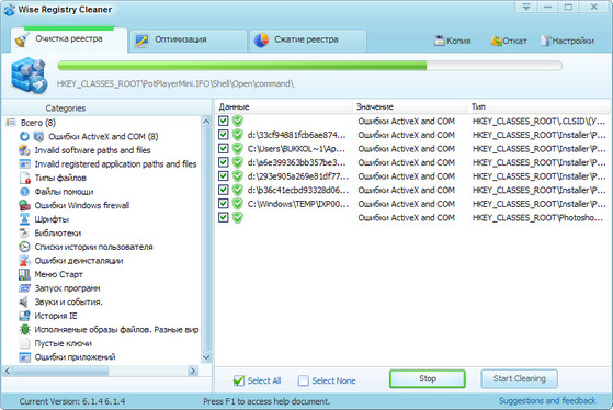 Wise Registry Cleaner - бесплатная версия безопасной утилиты для чистки реестра Windows. Программа сканирует реестр и ищет в нем некорректную и устаревшую информацию, после удаления которой операционная система работает более быстро. После того, как программа проанализирует проблемы вашей системы, вы можете сами просмотреть каждую найденную неполадку и посмотреть ее детальное описание. Все изменения, внесенные программой в реестр, могут быть отменены за два клика мышью. Также стоит отметить, что интерфейс программы переведен на множество языков, включая русский язык.