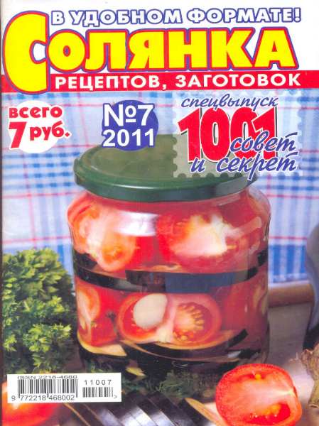 Журнал создан по лучшим рецептам, присланным в редакцию читателями и одобрен ими и их близкими. Читатели делятся своими любимыми рецептами. Тема номера: дачная кухня: просто и недорого. Содержание: салаты и закуски, выпечка, десерты, супы, горячее, "солянка" отвечает на вопросы читателей, праздничное меню.