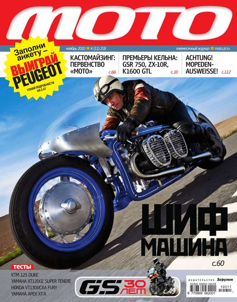 Крупнейший отечественный журнал о мототехнике и мотоциклистах. Выпускается издательством "За рулём" с 1991 года. В каждом номере: премьер-тесты, обзоры выставок, мировые новинки, актуальные тенденции рынка; рассказы о захватывающих поездках на мотоциклах по миру и России, о приключениях, описание маршрутов; секонд-тесты, лучшие модели прошлых лет; экзотические, уникальные мотоциклы и их создатели; обзоры выставок и многое другое.