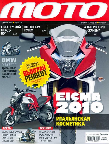 Журнал "Мото" - первый крупнейший в стране ежемесячный журнал о мототехнике и мотоциклистах. Сенсации мирового мотопроизводства, обзоры выставок, тесты, советы по эксплуатации, тюнинг, рассказы о путешествиях и звездах, спорт.