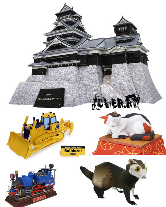 В подборку вошли модели животных, зданий, автомобилей, самолетов, динозавров, мотоциклов и многое другое. Всего 467 схем. В каталоге также находится список вошедших схем с переводом на русский язык названий там, где это необходимо.